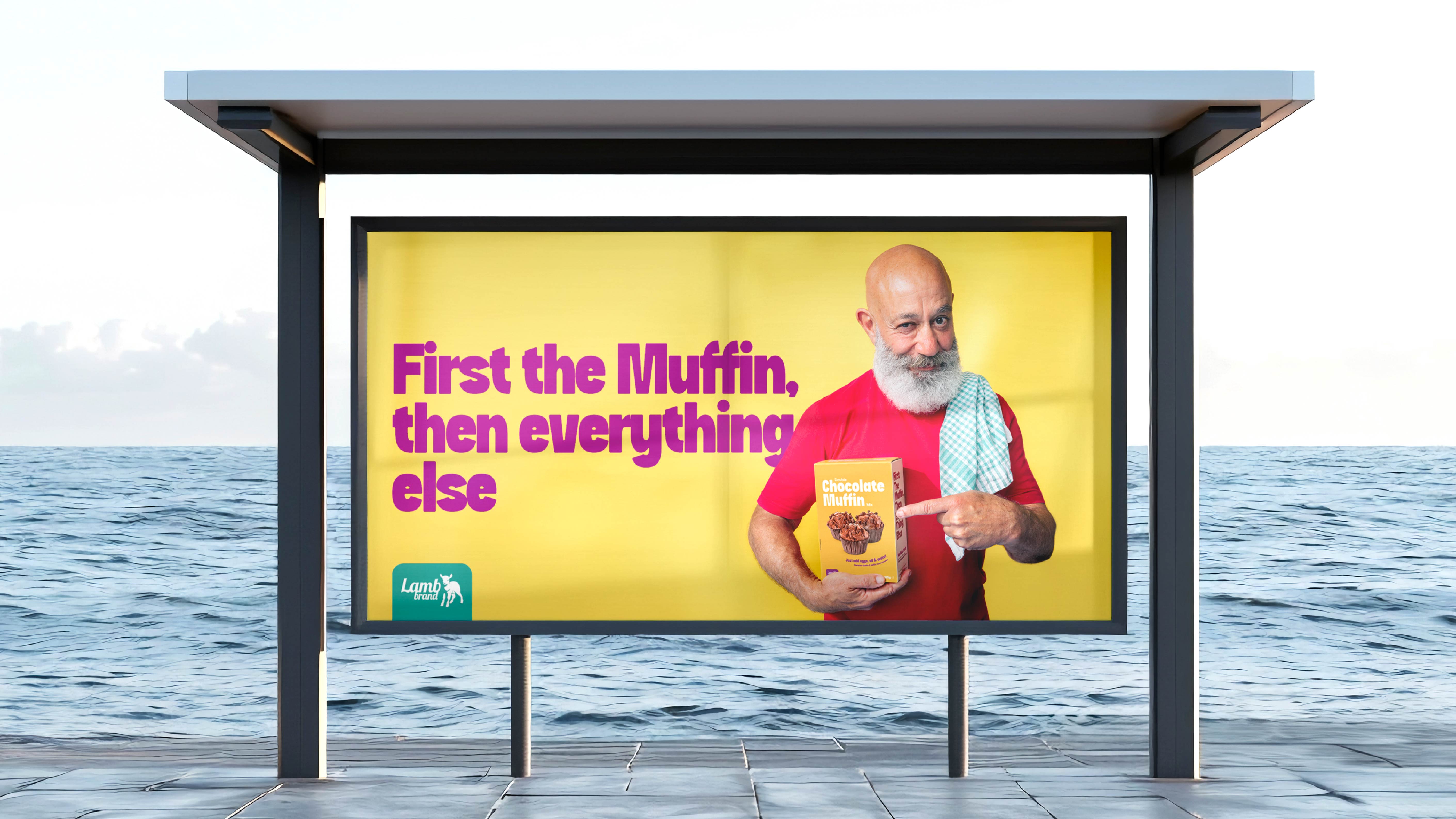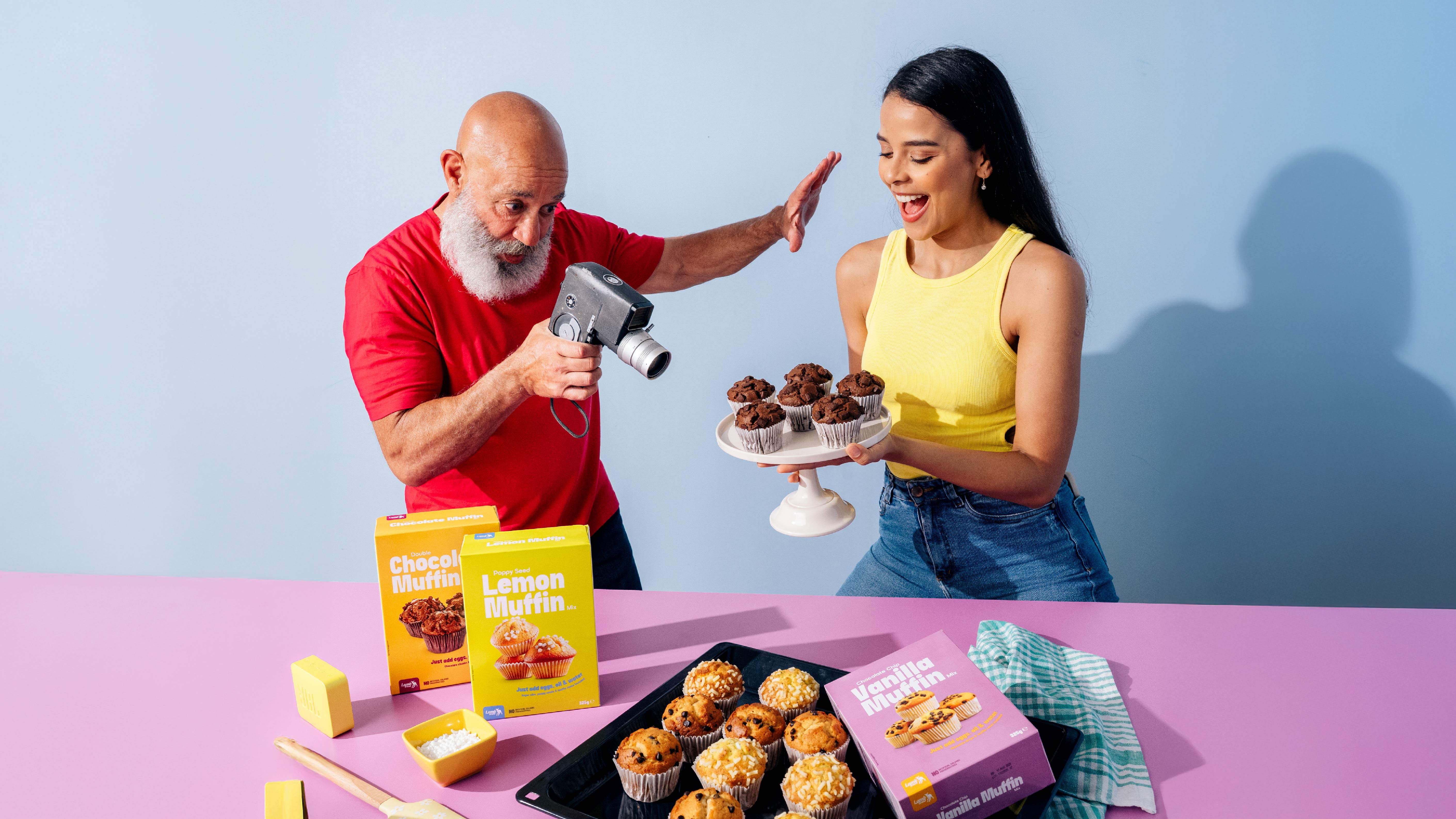 The next phase of the process was the photo and video shoot, developed under the concept “Cake Brings Joy!”. The idea created to convey that enjoying a cake or a muffin is always a fun and pleasurable experience. The photoshoot featured five actors, selected for their personality and energy, adding the attitude and emotion needed to visually represent Lamb Brand’s new product line. The main focus of the shoot was to express happiness, enjoyment, and emotional connection through every bite.
