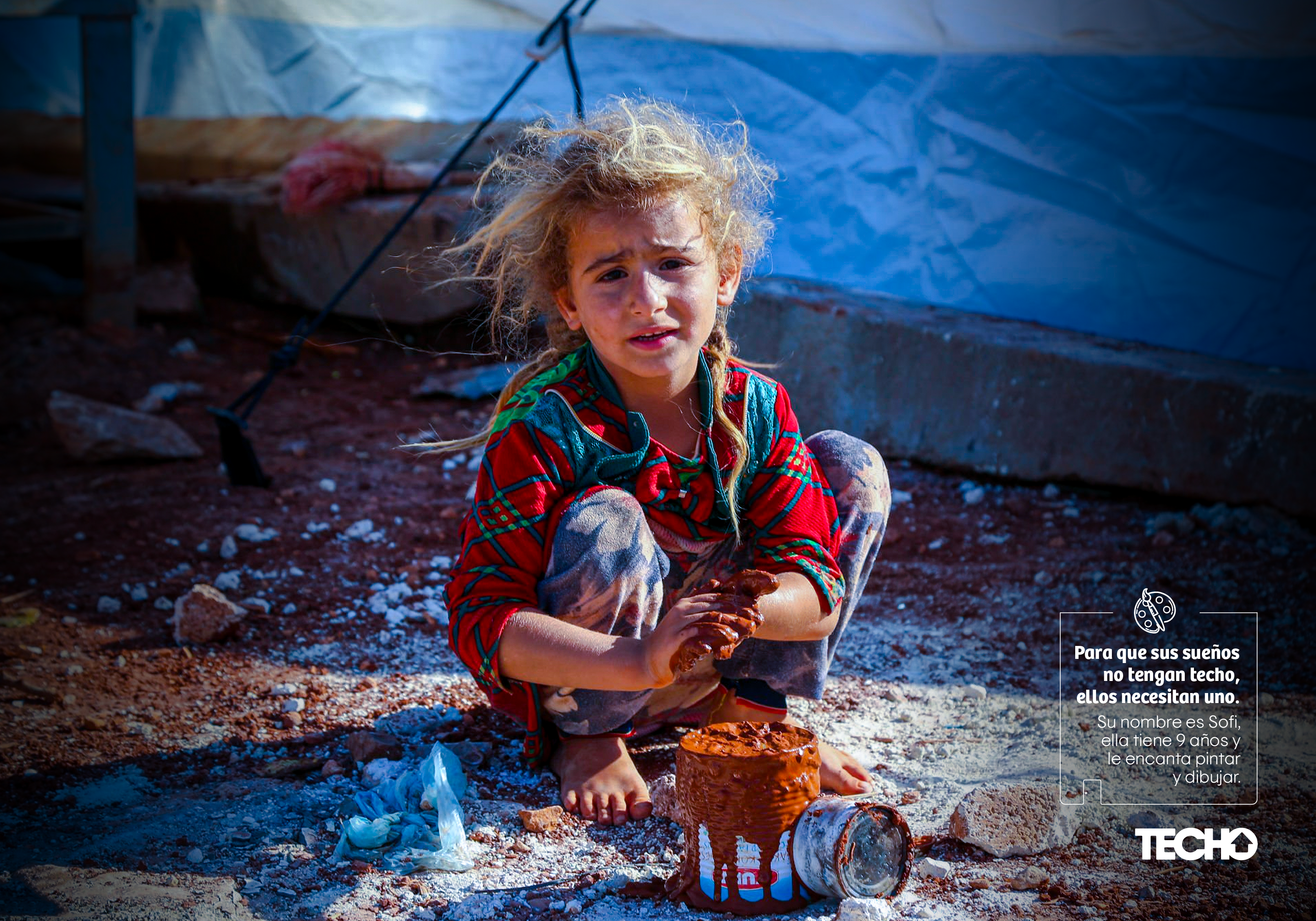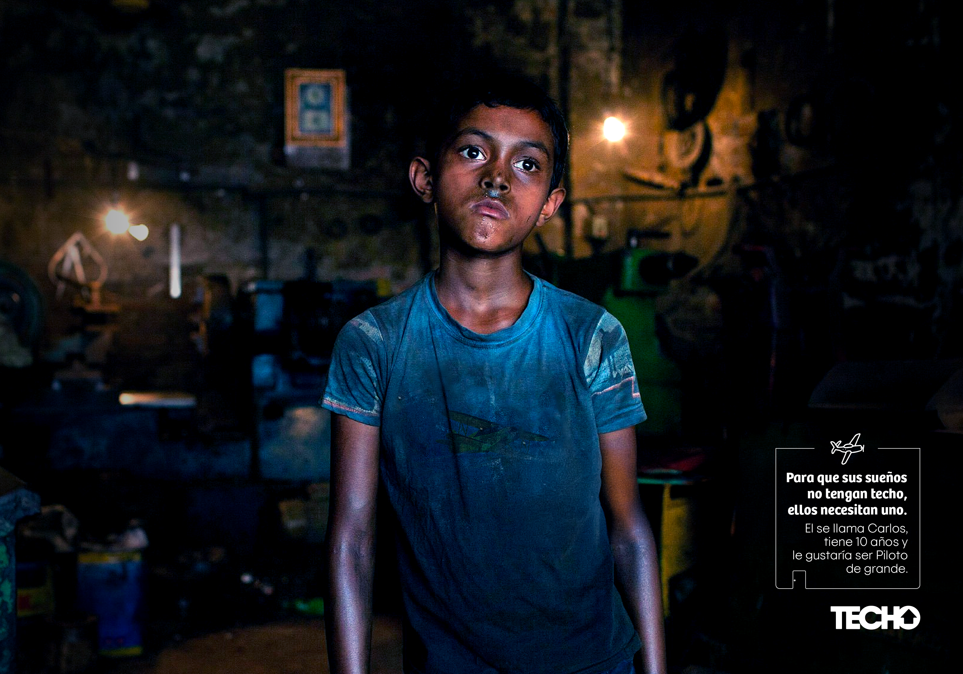 In this case I translated the concept so you can understand what the campaign means, but in reality it is developed as a wordplay in Spanish, especially with the word Techo, which is the name of the NGO and translates "ceiling".
