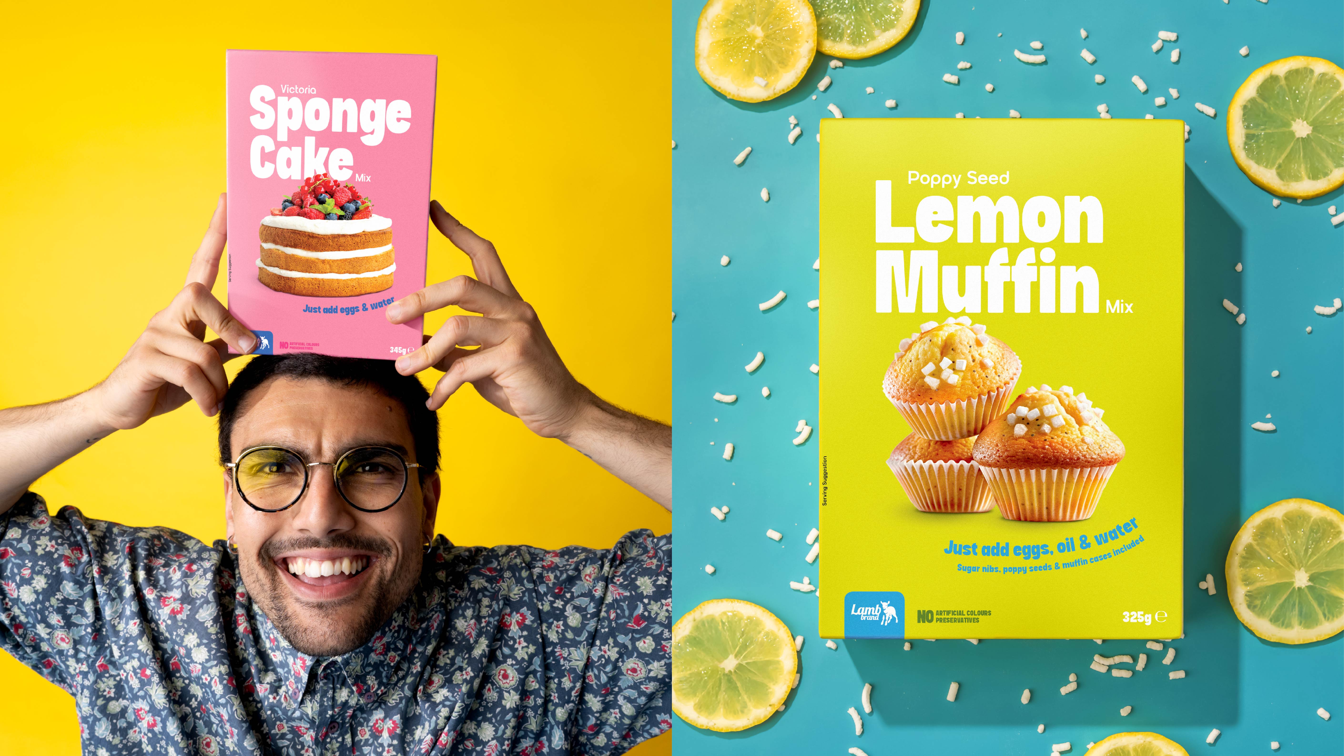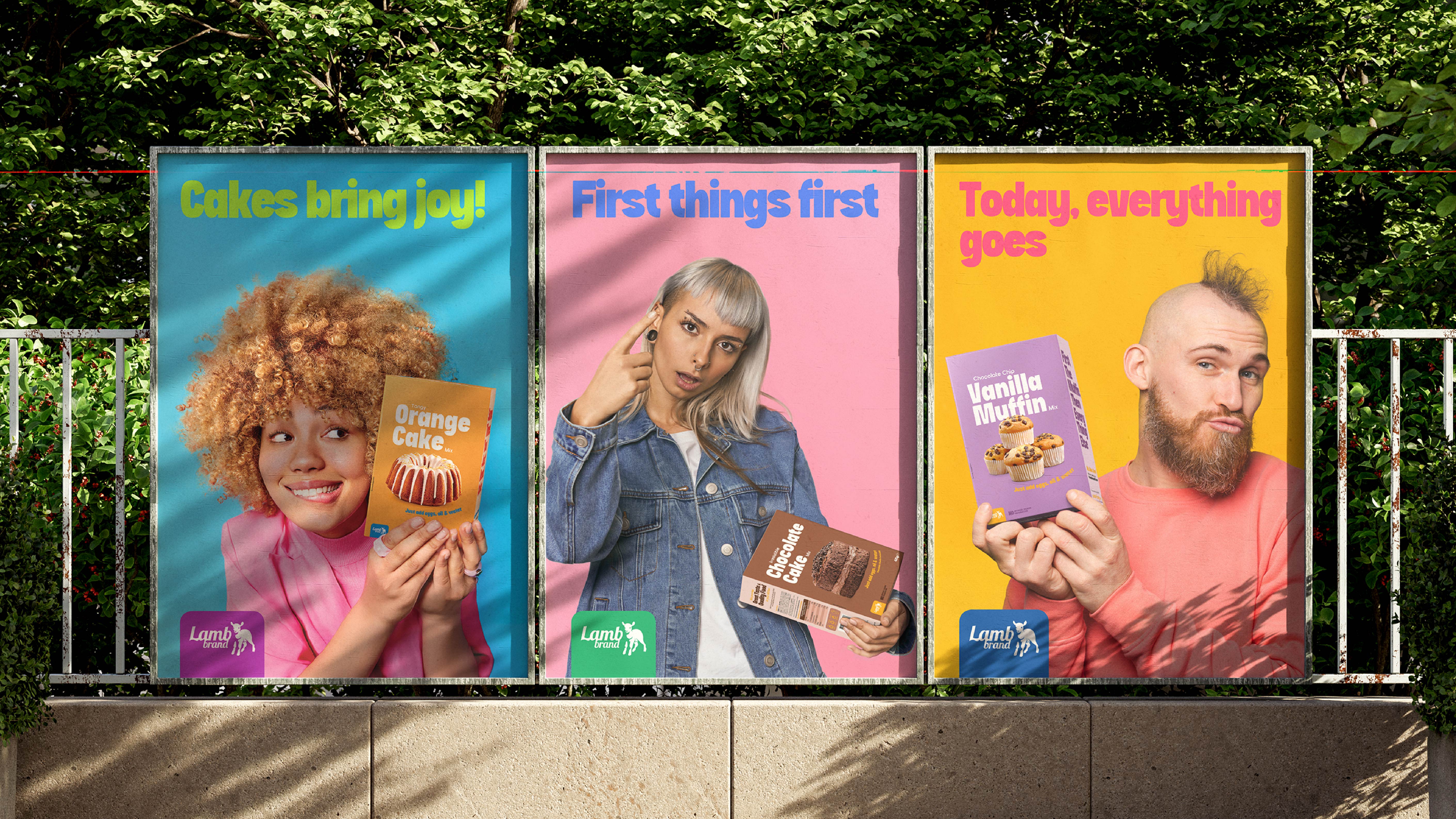 The next phase of the process was the photo and video shoot, developed under the concept “Cake Brings Joy!”. The idea created to convey that enjoying a cake or a muffin is always a fun and pleasurable experience. The photoshoot featured five actors, selected for their personality and energy, adding the attitude and emotion needed to visually represent Lamb Brand’s new product line. The main focus of the shoot was to express happiness, enjoyment, and emotional connection through every bite.